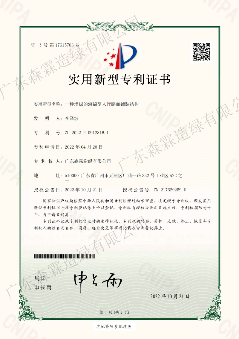 一种增绿的海绵型人行路面铺装结构